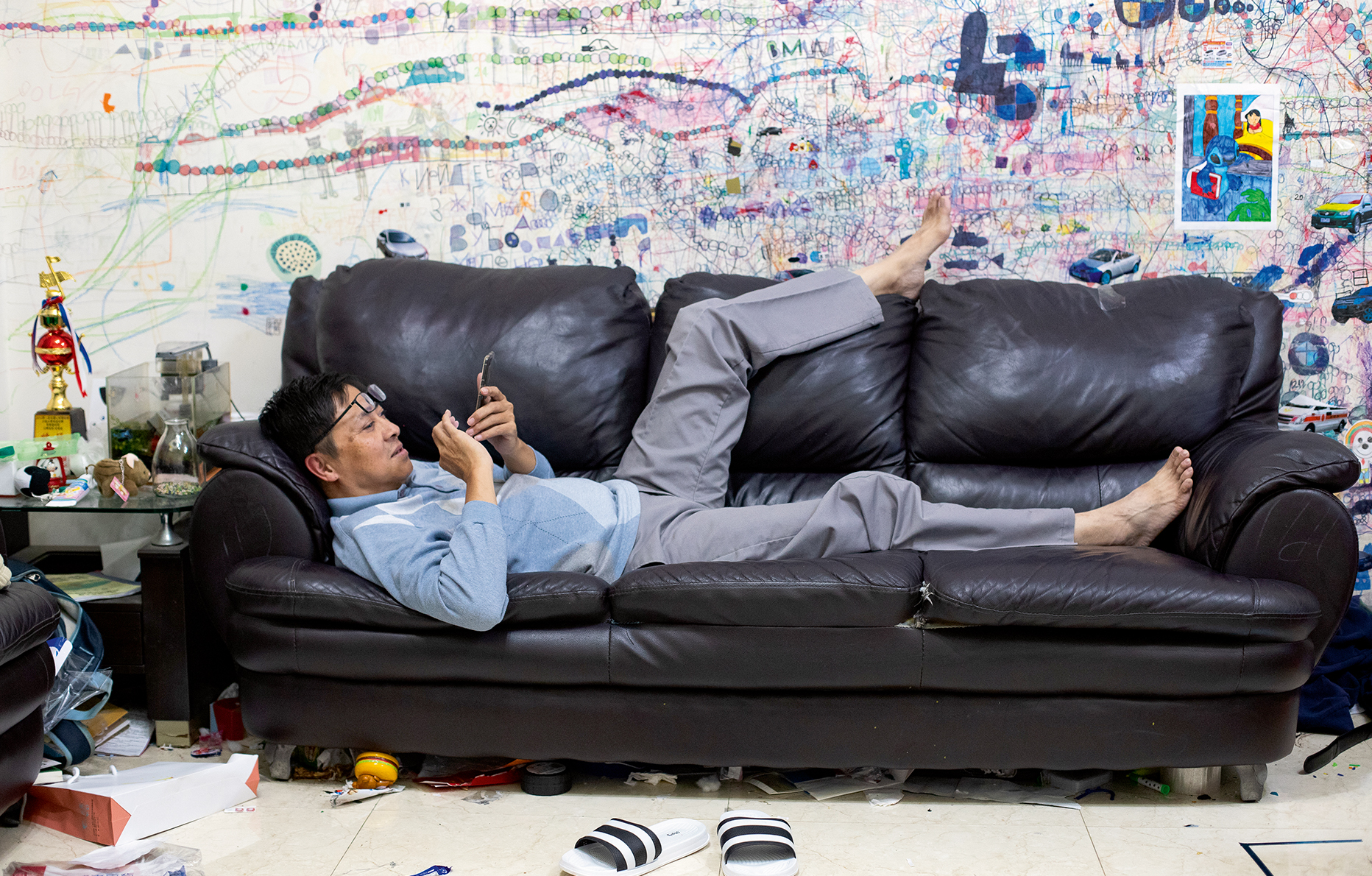 Elle livre une œuvre collaborative où les dessins des enfants, les photographies de journaux qu’ils colorient et les clichés qu’elle prend de leur quotidien dialoguent, tissant un langage partagé, un espace de communication commun. “L’appareil photographique instaure un rituel qui me plonge dans un état de méditation, et me permet de tomber sans cesse amoureuse du monde qui m’entoure, explique Chia Huang. Après avoir travaillé avec ces deux garçons, j’ai enseigné dans l’association à laquelle ils participent. Je ne vois pas ces enfants autistes comme des handicapés, mais au contraire comme des professeurs de vie. J’ai l’impression qu’ils sont habités par un dieu, et il me faut passer du temps avec eux pour découvrir ce dieu intérieur.”