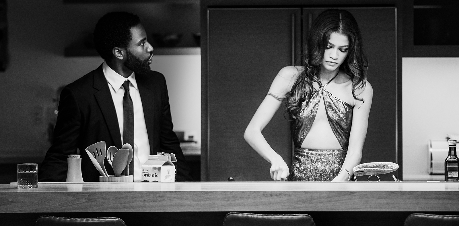 Et si le plus gros problème du couple n’était pas, en fin de compte, l’impossibilité pour chacun de s’isoler, de souffler et de prendre le temps de réfléchir à la relation ? Dans sa mise en scène, Sam Levinson – qui semble avoir écrit les disputes avec ses tripes – ne déroge pas à une règle : chaque interaction, chaque accalmie et chaque pleur se déroule à huis-clos, dans la sublime maison du couple toute en baies vitrées, qui finit par représenter leur cage dorée. Lorsque Marie accuse Malcolm (ou inversement), elle déverse son lot de reproches jusqu’à l’épuisement, puis vient ce moment de flottement où elle semble chercher où aller – ou qui appeler à l’aide. Mais c’est impossible. Elle rejoint donc la terrasse de la villa, hagarde, pour s’assoir sur un transat à côté de son compagnon.