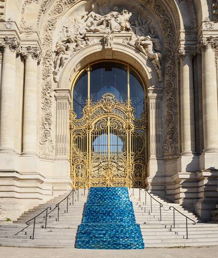 In 70 works, Jean-Michel Othoniel draws an enchanted path at the Petit Palais : his Blue River of shimmering bricks, as soon as you enter the Parisian museum, evokes the vast paved path of the Wizard of Oz.This idea of staging the building, by dialoguing with the golden gate, forms an invitation to enter. I come to pick up the public in the street and I accompany them on a blue carpet, which puts them in the position of an actor in this exhibition. The Petit Palais was a place designed to amaze people in 1900. I wanted to reactivate this wonder, to give back to the place the power it had at the time to make its audience dream.” explains the artist.