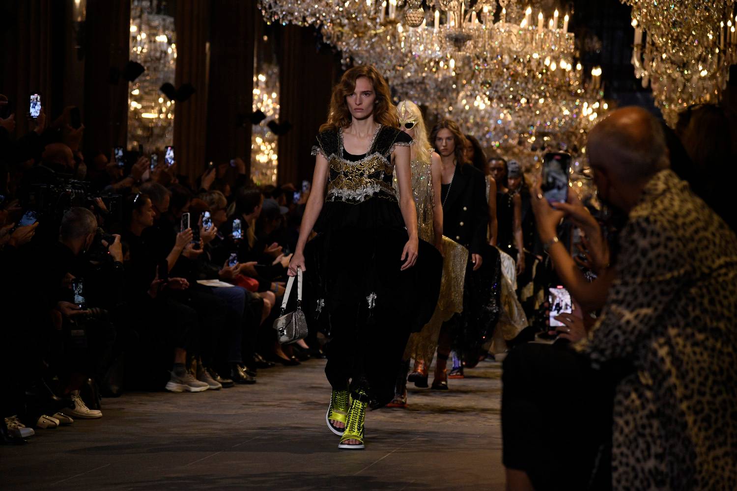 Cindy Bruna, Taylor Hill, Constance Jablonski and Isabeli Fontana wore this Messika By Kate Moss collection, all in finesse and lightness, where sets with a graphic, hippie chic and rock style follow one another. The Messika by Kate Moss collection, in the form of two opuses, draws from the top model’s jewelry box. These creations are a real exercise in style around the worn and dress the head, wrist, hand and body with grace. Among the 100 pieces designed by Valérie Messika, founder and artistic director of the jewelry house, and Kate Moss, there are many head and body jewelry, earcuffs or two-finger rings that are as ergonomic as they are refined.