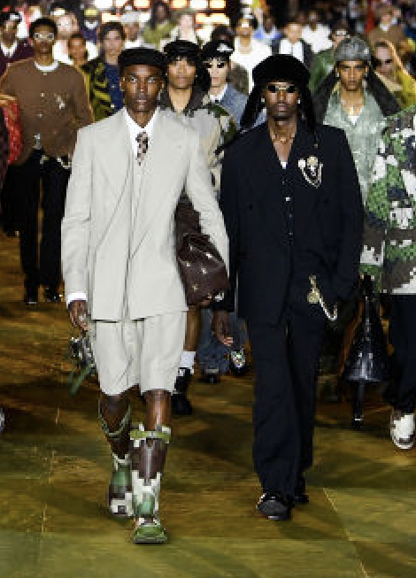 Overall, less bling than the set would suggest at first sight, this collection extends the inclusive vision of his late predecessor Virgil Abloh, who passed away in November 2021, but also reconnects with the heritage of the iconic house through a spectacular and accessible show.