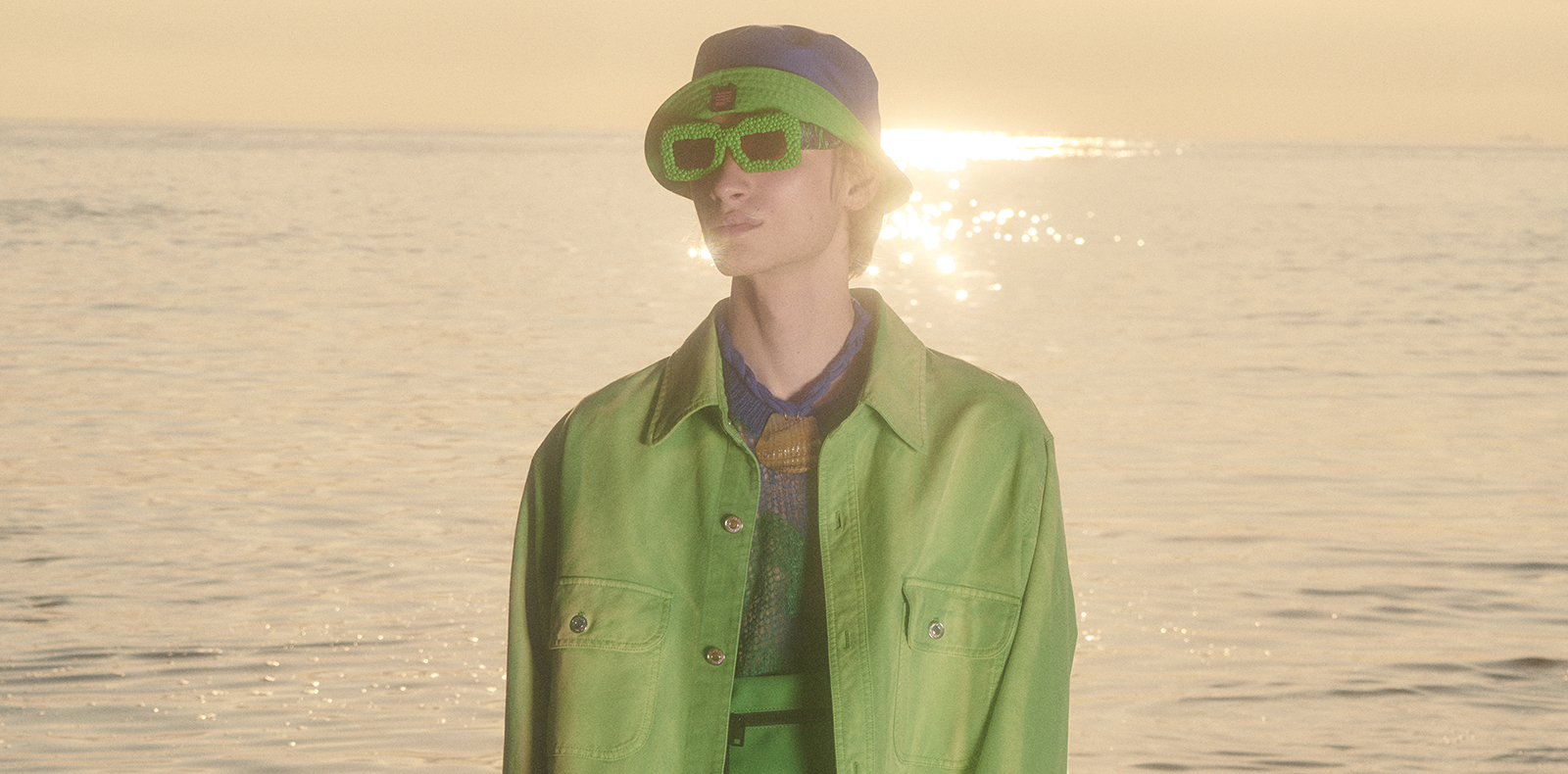 Porté sur la tête, le foulard évoque naturellement les années 70. Ici, il s’alterne sur le visage façon pirate ou bandeau et se décline non plus à motifs criards et colorés mais dans des carreaux noirs et blancs, un discret tie and dye ou alors avec le fameux logo Dior oblique créé en 1967 par Marc Bohan, directeur artistique de la maison à l’époque. Le foulard confère à l’ensemble de la collection un côté frondeur qui contrebalance les silhouettes sages et tranquilles.