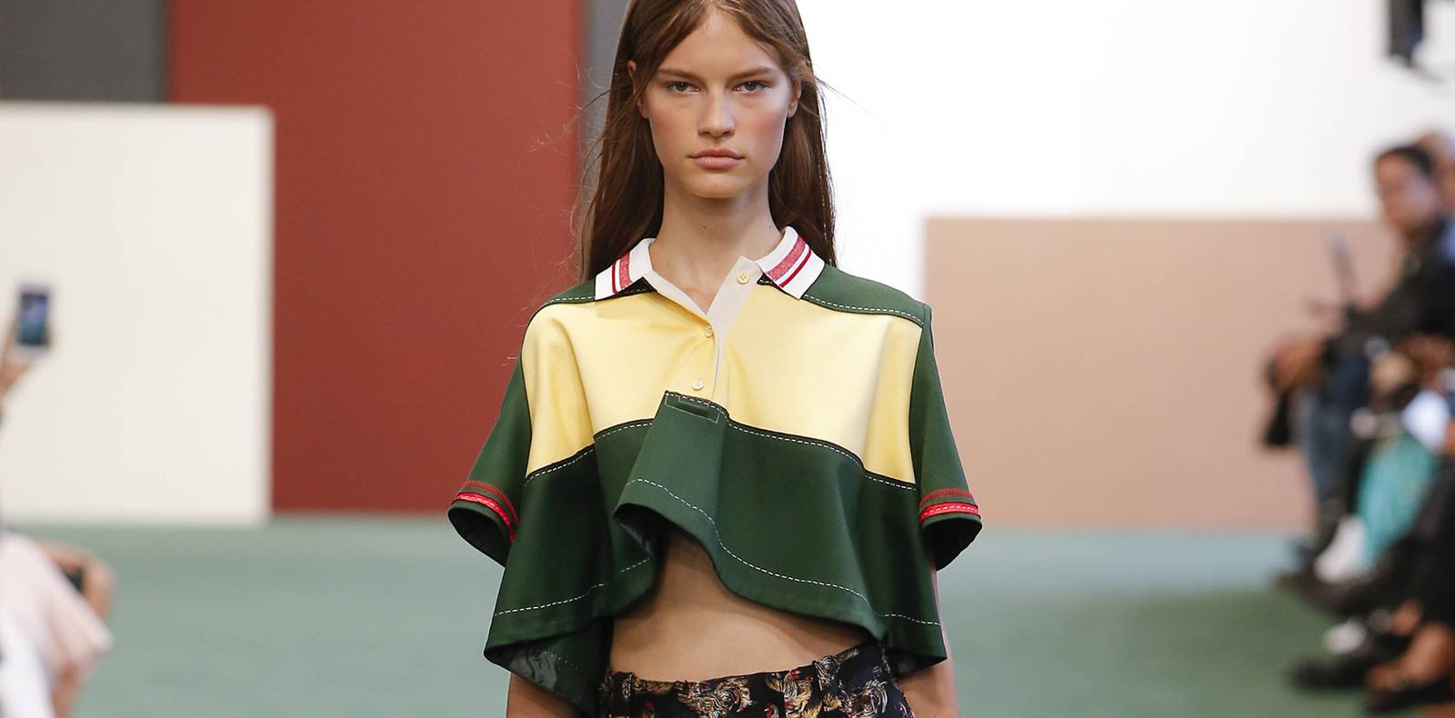 Ici, le photographe recrée une impression familière de scènes du quotidien en immortalisant des passants vêtus de la dernière collection au gré de leurs déplacements. Si ceux-ci ne sont pas tous des mannequins castés par le label, ils font en réalité partie de la “famille” Helmut Lang : des amis et collaborateurs du label deviennent ici des monsieur et madame tout le monde, mis en scène en train de déambuler le long de blocs de la Grosse Pomme. Associant volontiers un vestiaire de soirée à des pièces plus casual, leurs ensembles se composent de chemises et de jeans, de légères robes bustier ou drapées au-dessus du genou, un manteau doublé en mouton, des vestes de costume combinées à des pantalons pattes d’éléphant… Des couleurs douces ponctuent cette collection, à l’instar d’un vert pastel d’une chemise pourvu de sangles, ou d’un lilas qui assortit un débardeur et une épaisse parka portés par un duo. Ces tenues sont notamment ponctuées de sandales à talons oranges ou vertes ou de hautes bottes en cuir noir lacées.