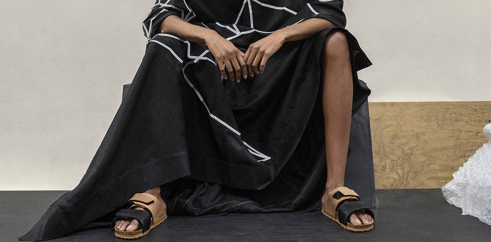 Parmi les détails qui donnent à ce défilé une douce sophistications, des ceintures portées en accumulation, des chaussettes ou guêtres avec des mules et escarpins ou un layering pour un style faussement débrayé.