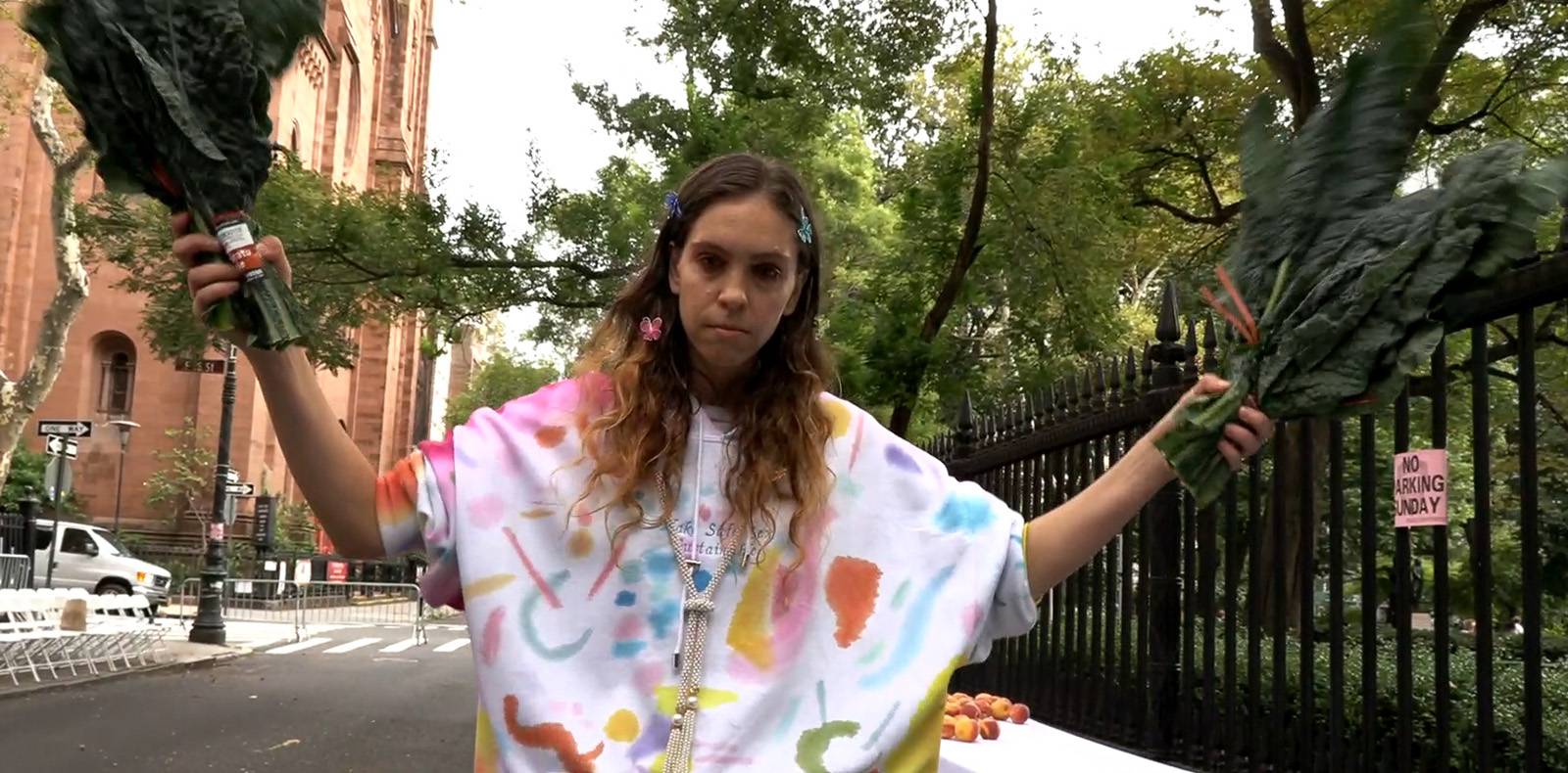 Diplômée de l’École nationale supérieure des beaux-arts de Paris en 2002 et pensionnaire de la Villa Médicis en 2017, Eva Jospin développe un art à la croisée de la sculpture et de l’installation. Jusqu’à présent, l’artiste française installée à Paris s’est principalement illustrée avec ses paysages et forêts, souvent réalisés en carton, qu’elle cisèle, coupe et sculpte à la manière d’un orfèvre. Pour le défilé Dior haute couture automne-hiver 2021-2022, présenté lundi 5 juillet 2021, c’est une scénographie entièrement textile, faisant directement écho aux créations de la maison, qu’elle déploie dans le pavillon du musée Rodin. Sur une toile de fond en soie, des fils de coton, de lin et de soie, mêlés à quelques fils d’or métallisés, se mêlent et s’emmêlent sur près de 350 mètres carrés. Pour réaliser cette œuvre, plus de 150 points de couture différents ont été utilisés, renvoyant aussi bien à des techniques ancestrales indiennes qu’européennes, créant un effet bigarré de textures contrastées. D’une précision incroyable, les détails du décor emportent le visiteur dans un paysage utopique, composé de lianes, de châteaux et de montagnes.